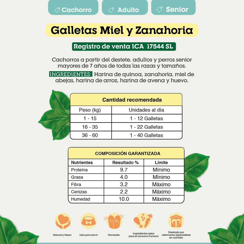 - Galletas 100% naturales diseñadas con el tamaño ideal para entrenar a tu mascota.