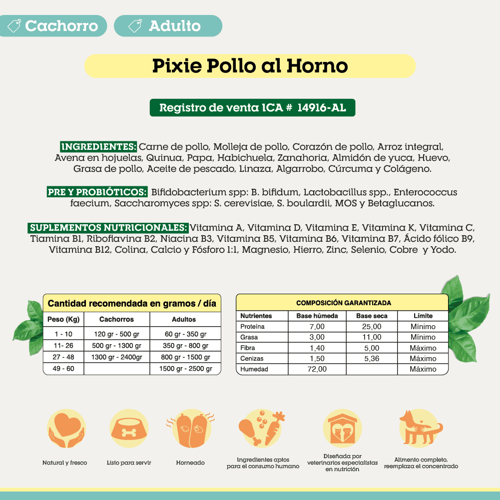 1 valoración en Pixie de Pollo al Horno para Perros y Cachorros y Adultos